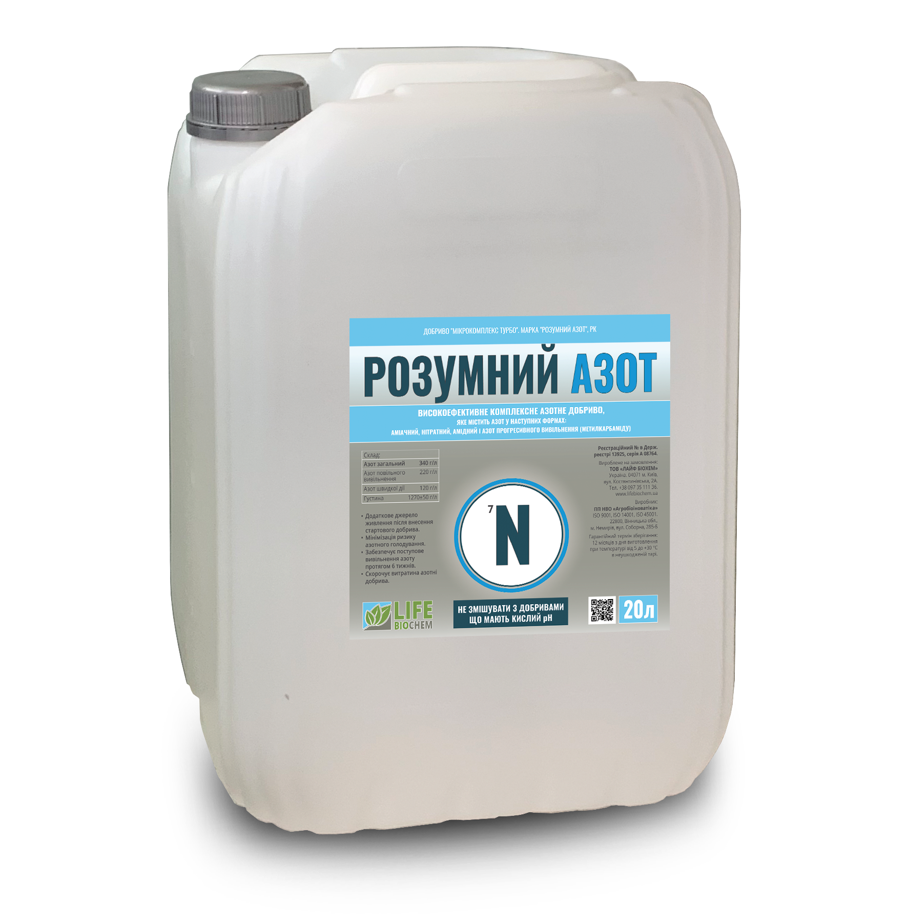 Добриво РОЗУМНИЙ АЗОТ — високоефективне комплексне азотне добриво, яке містить азот у наступних формах: аміачний, нітратний, амідний і азот прогресивного вивільнення (метилкарбаміду).