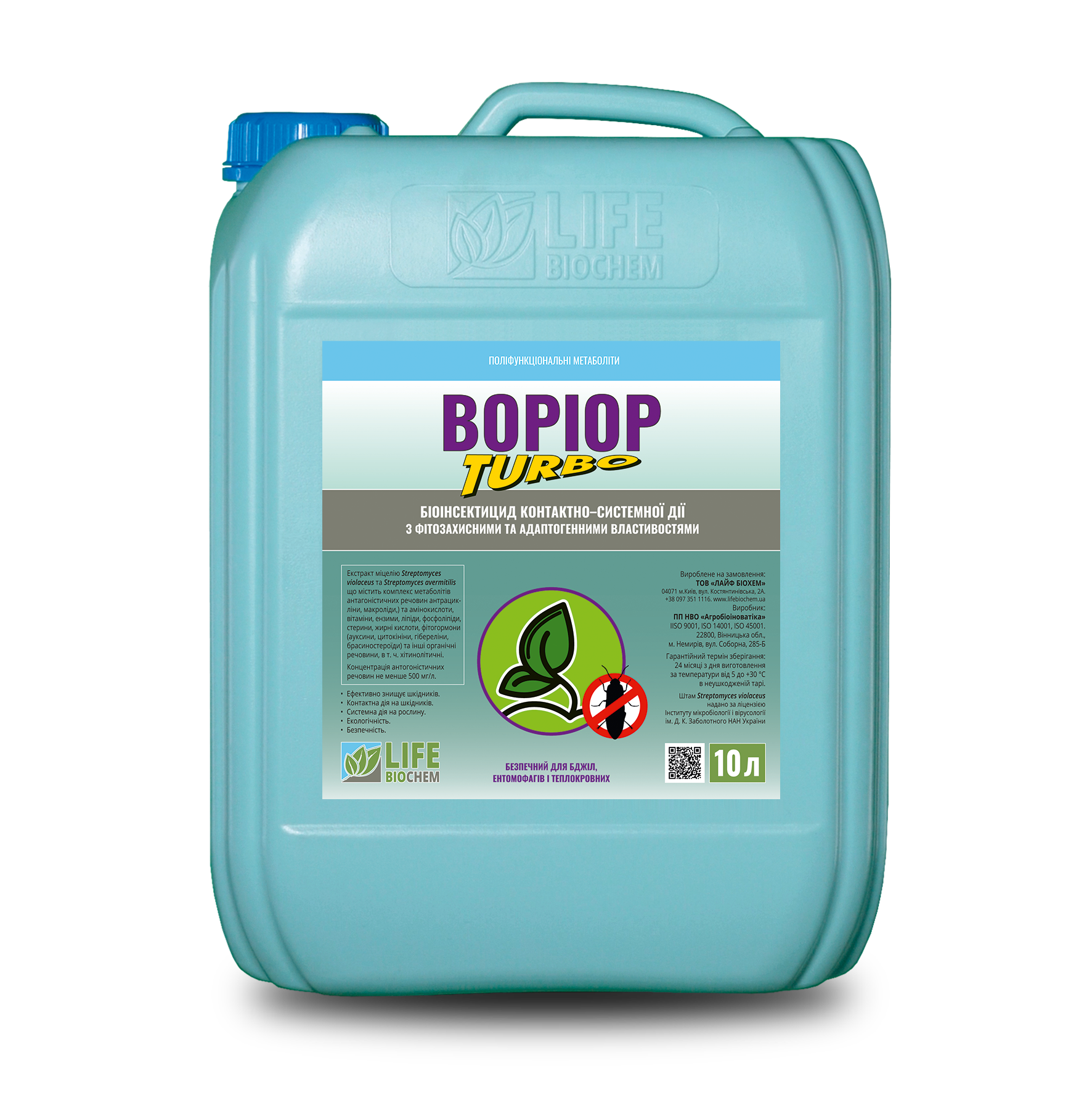 ВОРІОР ТУРБО — збалансований комплекс метаболітів актинобактерій Streptomyces violaceus, Streptomyces avermitilis з хітинолітичними речовинами для знищення шкідників і нематод.