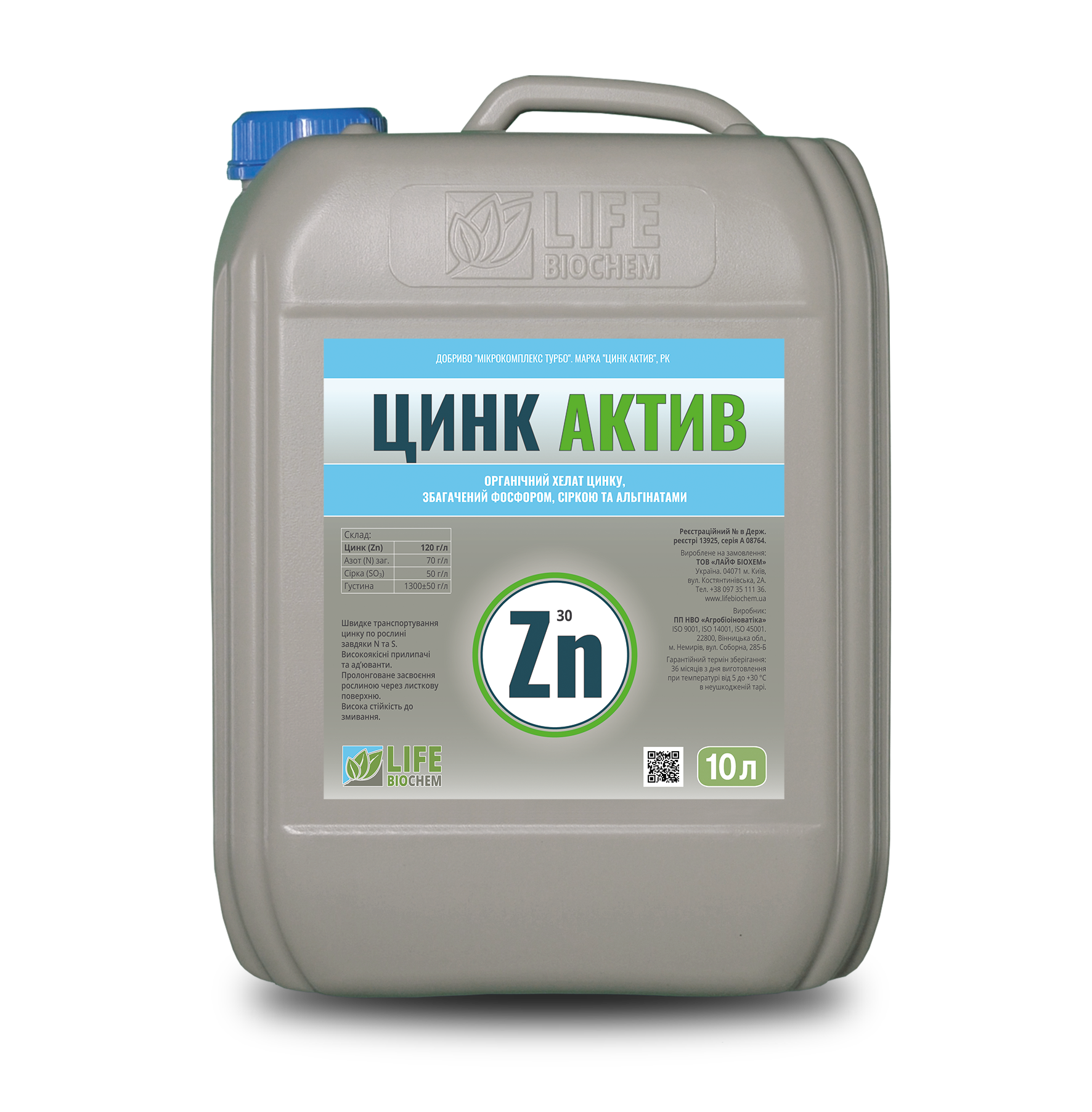 ЦИНК АКТИВ — рідкий комплексний концентрат цинку. Функціональний препарат, що діє як антистресант та одночасно покриває дефіцит цинку. Альгінати в добриві ефективно відновлюють порушені метаболічні процеси в рослині спричинені абіотичними факторами, створюють додатковий захист при посухах. Альгінати в складі препарату покращують проникність через кутикулу листка, що підвищує ефективність засвоєння внесеного цинку.